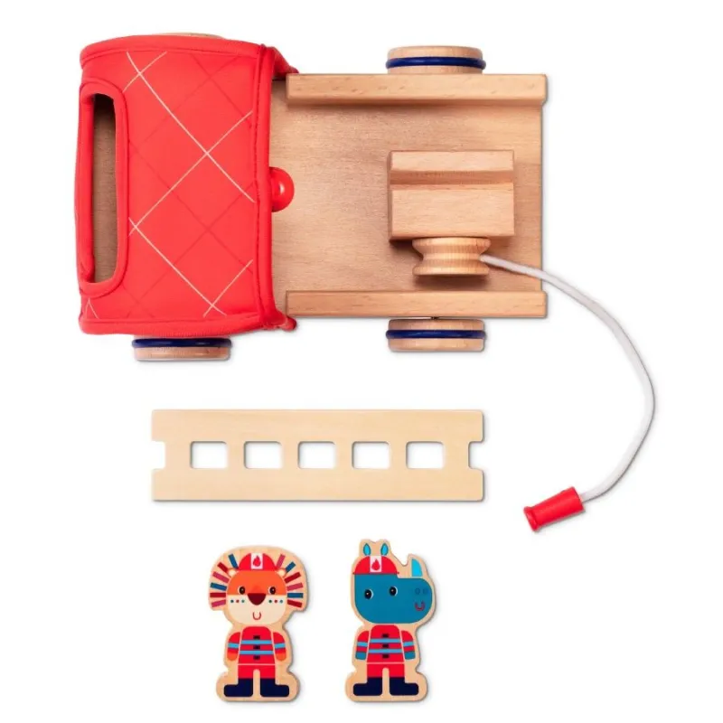 - Contiene: un camión de bomberos con dos conductores de madera, Jack el león y Marius el rinoceronte y una escalera.