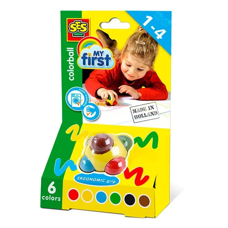 Mi primera ColorBall es una bola con empuñadura ergonómica y seis colores de cera para que los niños descubran su potencial creativo desde edades muy tempranas.