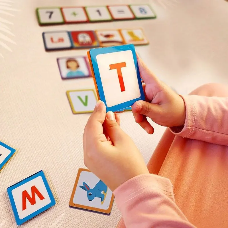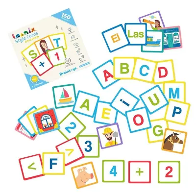 - Contiene: 150 tarjetas educativas con letras, números y signos matemáticos.