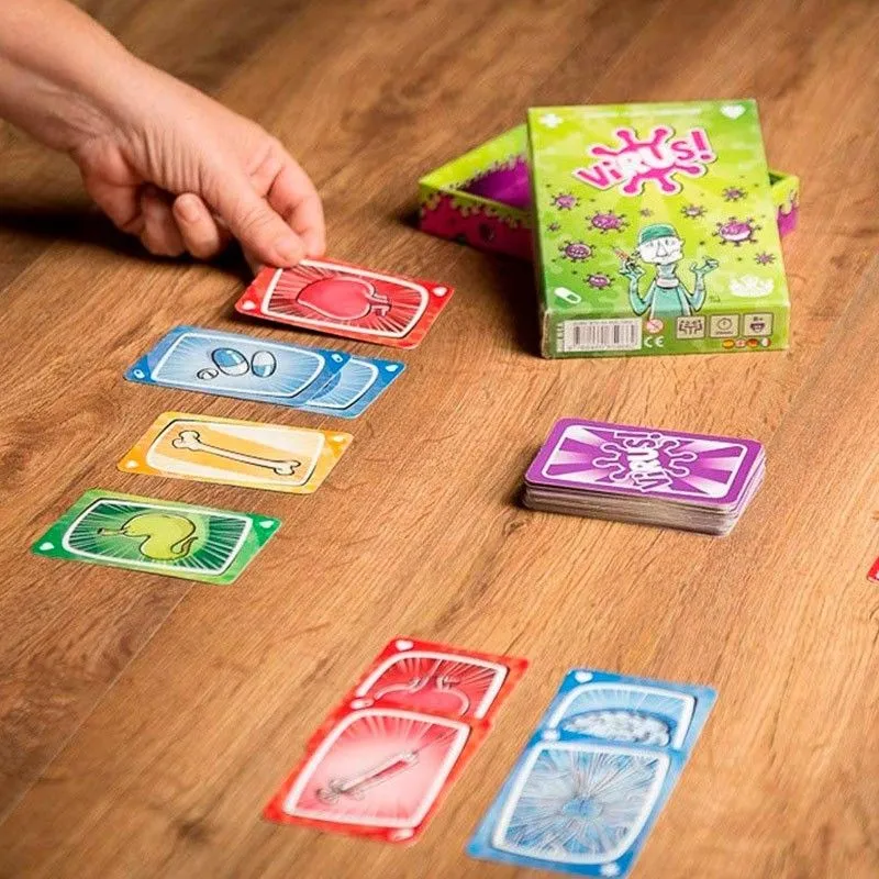 ¡Virus! Un juego de cartas rápido con una misión clara, erradicar el virus de tu organismo, evita que tus oponentes te infecten, destruyan o roben tus órganos. Para lograrlo podrás utilizar las píldoras y poner tu s órganos a salvo ¡Serás el primero en colocar los 4 órganos sanos sobre la mesa para ganar!