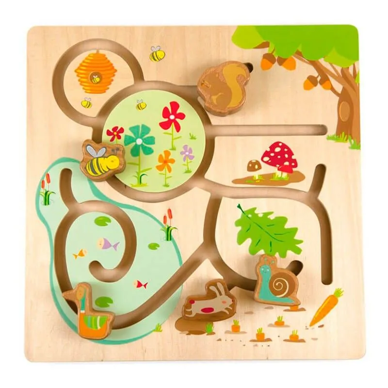 Estimule los sentidos del bebé con estos cinco amigos del bosque (un conejito, una abeja, una ardilla, un caracol y un pato) que se deslizan por el tablero de juego para llegar a su hábitat. ¡A los niños pequeños les encantará mover los animales y descubrir donde viven!