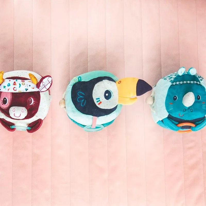 ¡Un juguete de estimulación lleno de actividades que brindará seguridad y confianza! Marius es un rinoceronte amigable, suave al tacto y lleno de colores, sorpresas y actividades. Si abres su regordeta barriga encontrarás un espejo con etiquetas y una simpática arañita que si la estiras vibra. Además… ¡si aprietas su hocico, Marius toca el saxofón!