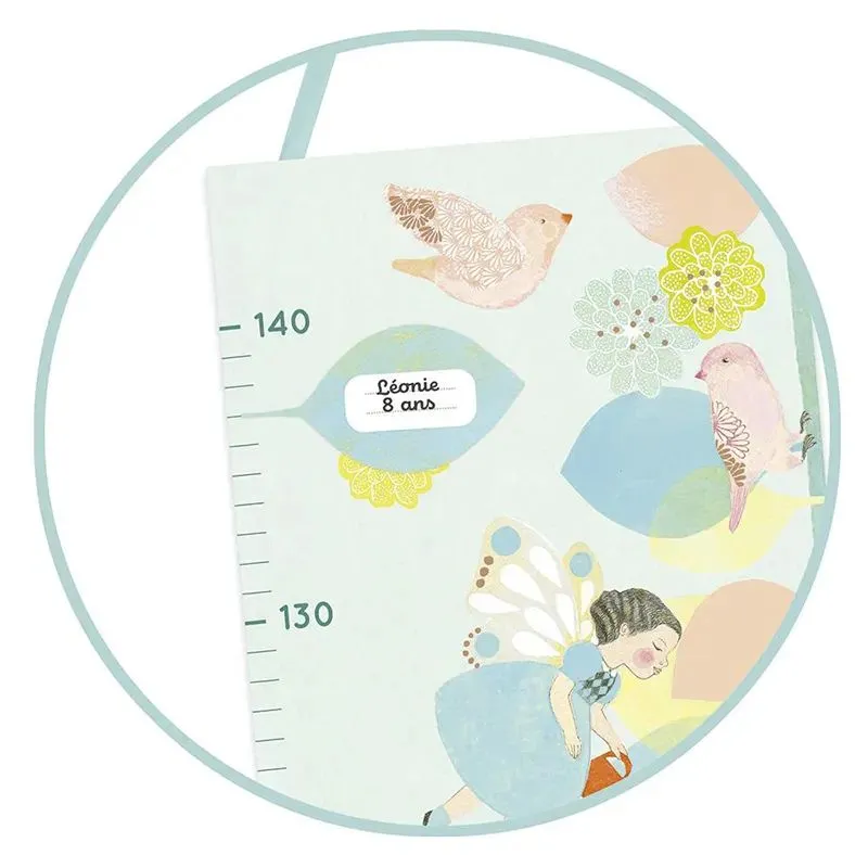 - Un medidor de altura con temática el mundo de las flores y las hadas hasta 140 cm.