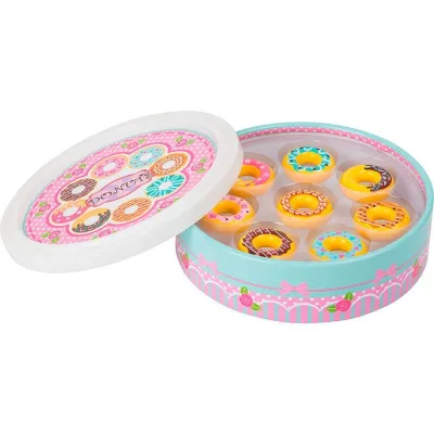 Set 8 donuts de juguete con diferentes coberturas decoradas y presentados en una bonita caja decorada, un complemento que encanta a los niños y les ayuda a desarrollar el juego simbólico y la sociabilización.