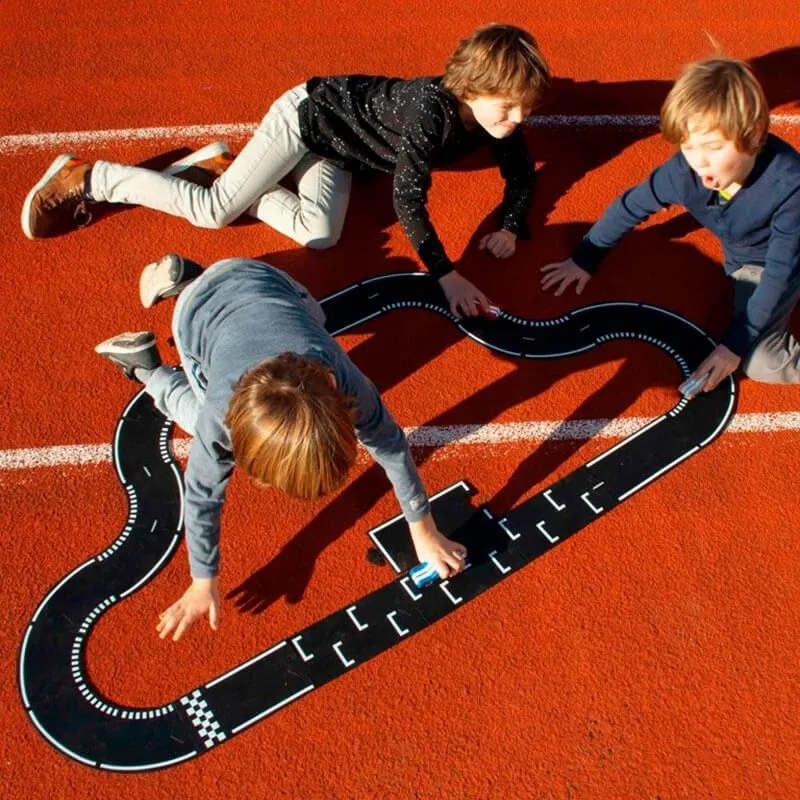 Crea los circuitos más alucinantes con las 24 pistas flexibles de caucho y disfruta viendo como tus hijos crean increíbles carreras con divertidas paradas en boxes. Un juego para desarrollar la imaginación apto tanto para interiores como para exteriores que se adapta a casi cualquier terreno.